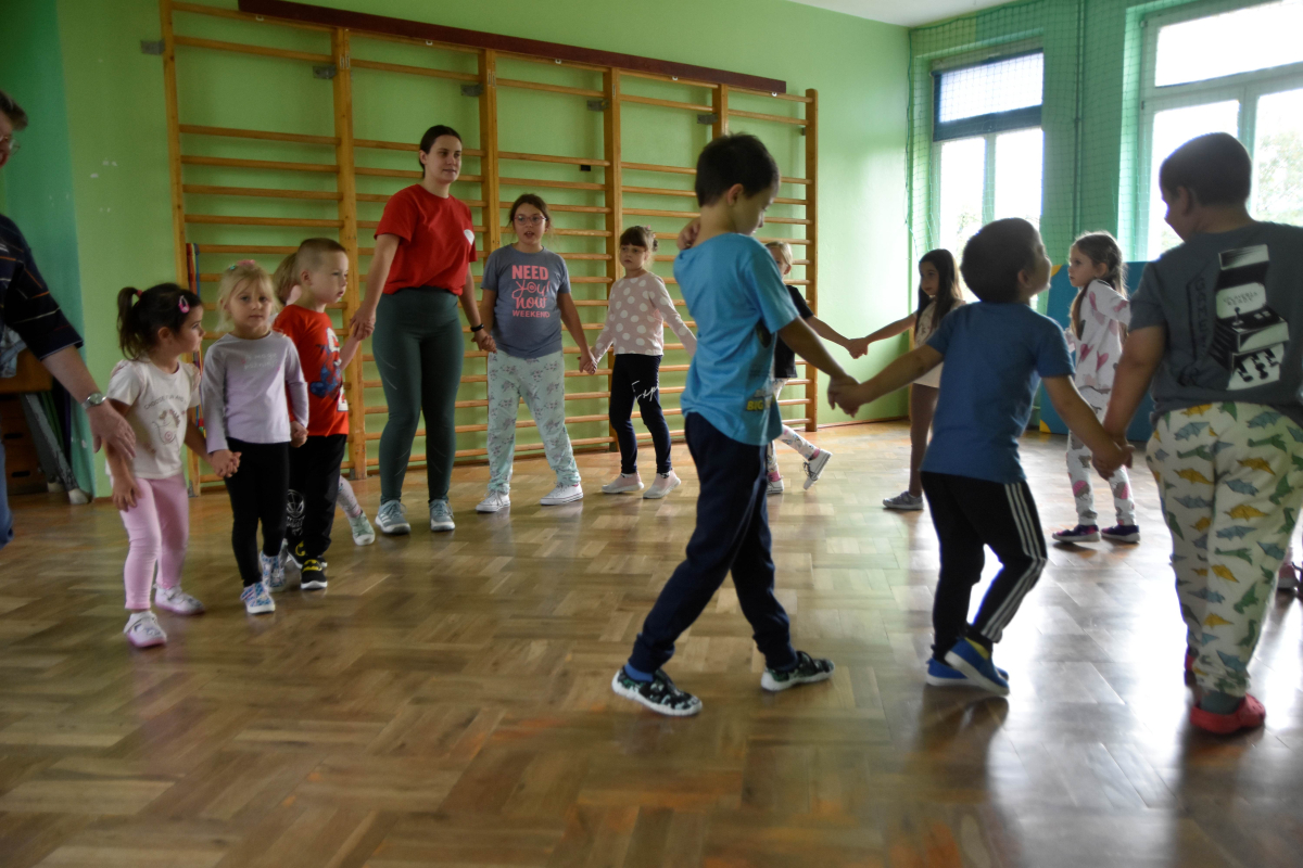 Przedszkolaki z radością poznawały pierwsze kroki taneczne i bawiły się przy rytmach tradycyjnej muzyki.