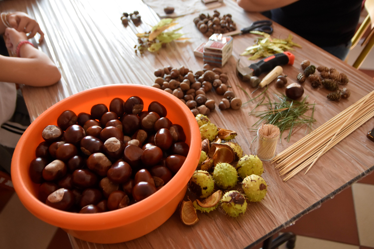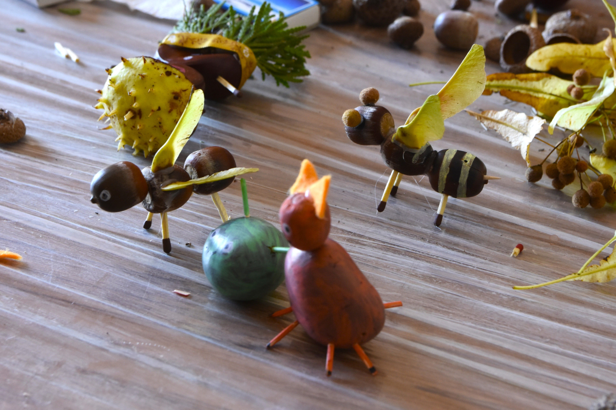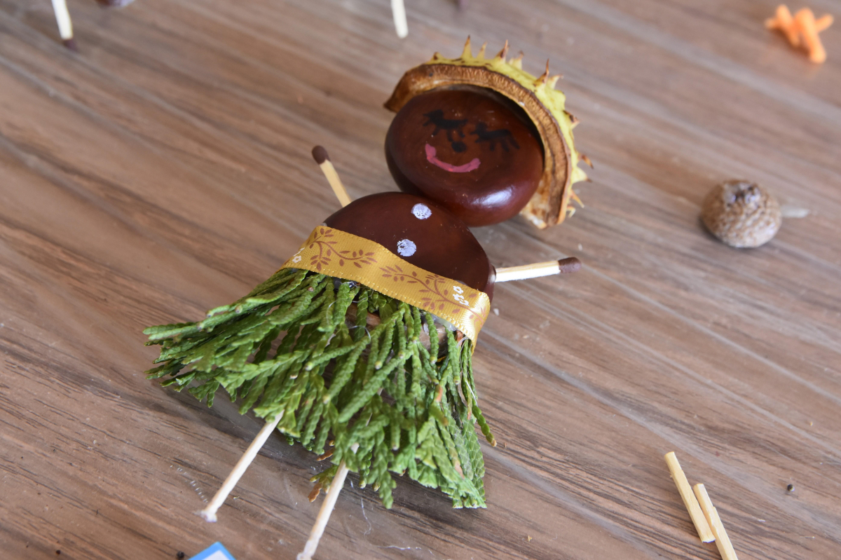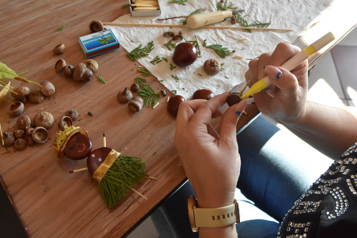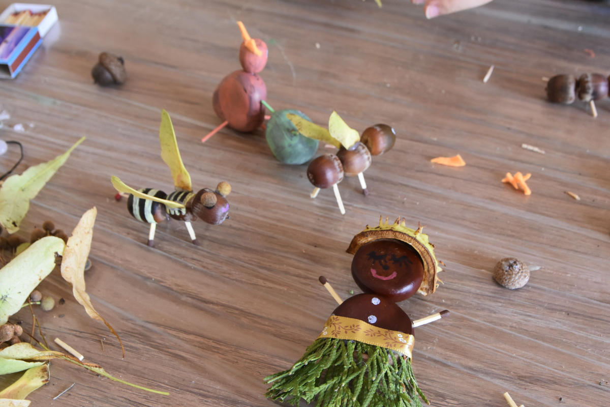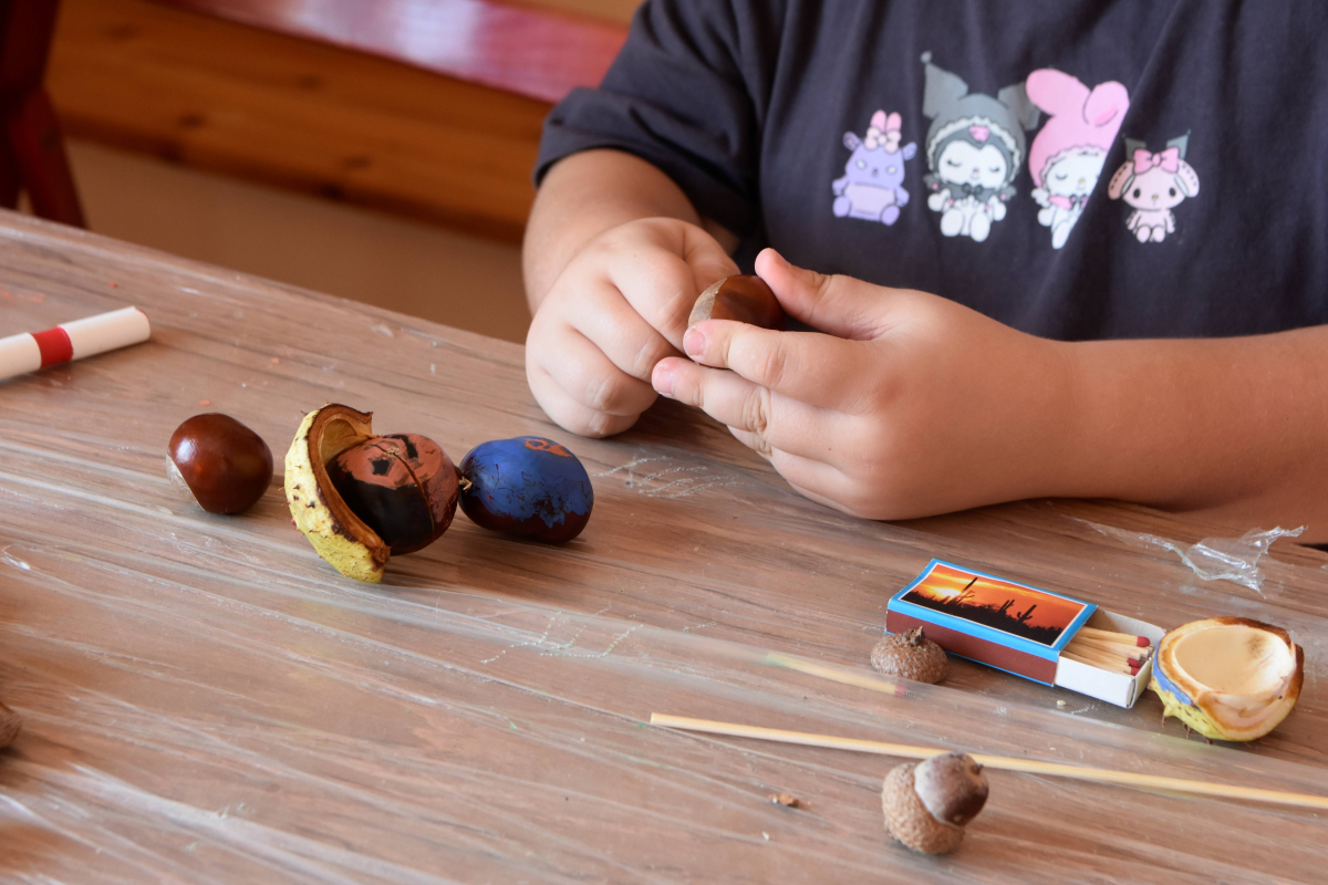 Tematem dzisiejszych warsztatów były jesienne ludziki! Jak można się domyślić, do wykonywania figurek wykorzystaliśmy jesienne skarby, takie jak kasztany i żołędzie.