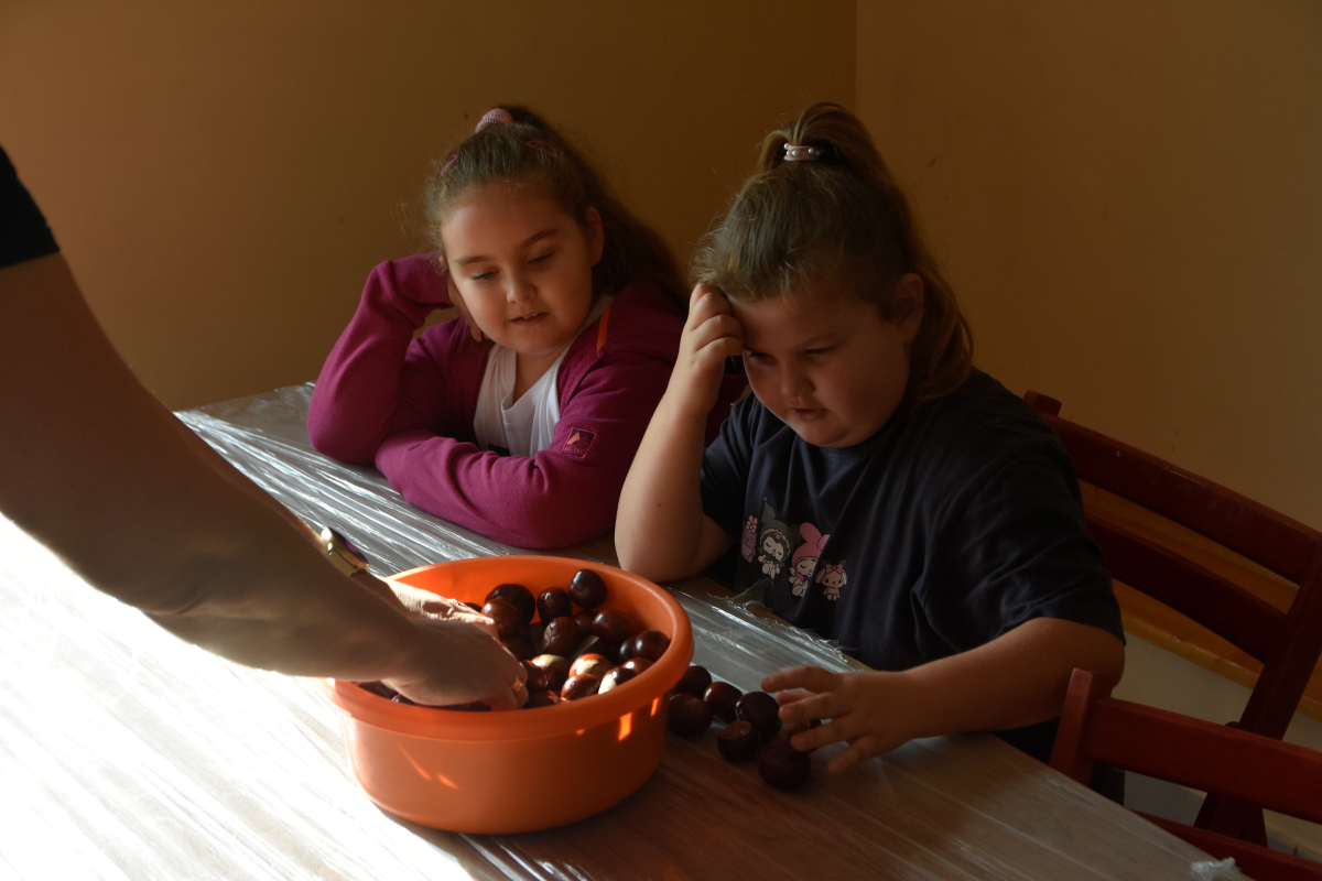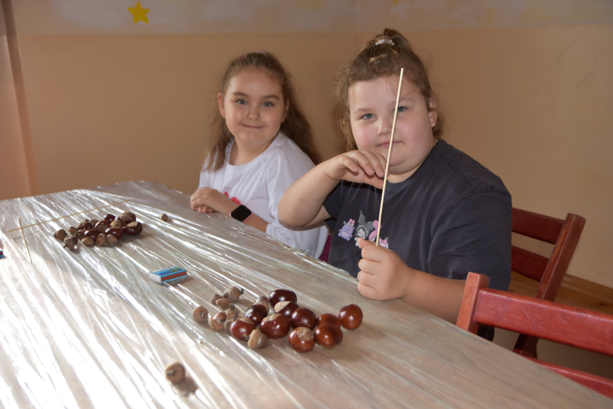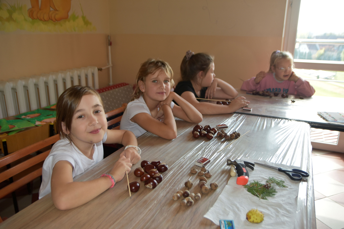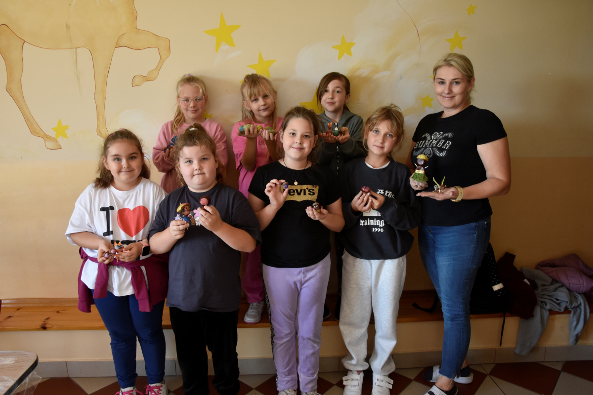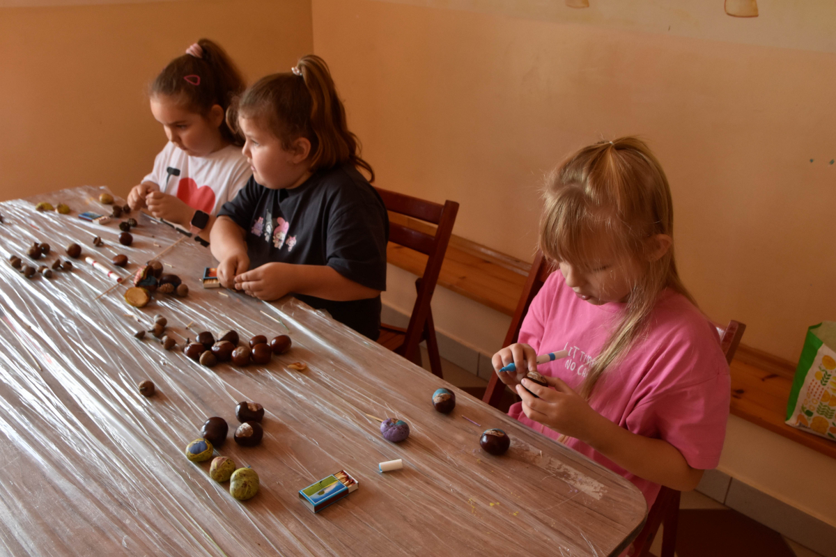 Tematem dzisiejszych warsztatów były jesienne ludziki! Jak można się domyślić, do wykonywania figurek wykorzystaliśmy jesienne skarby, takie jak kasztany i żołędzie.