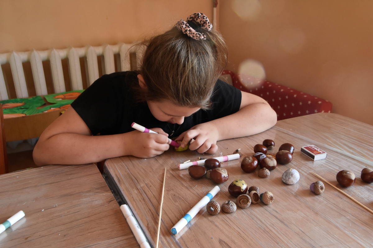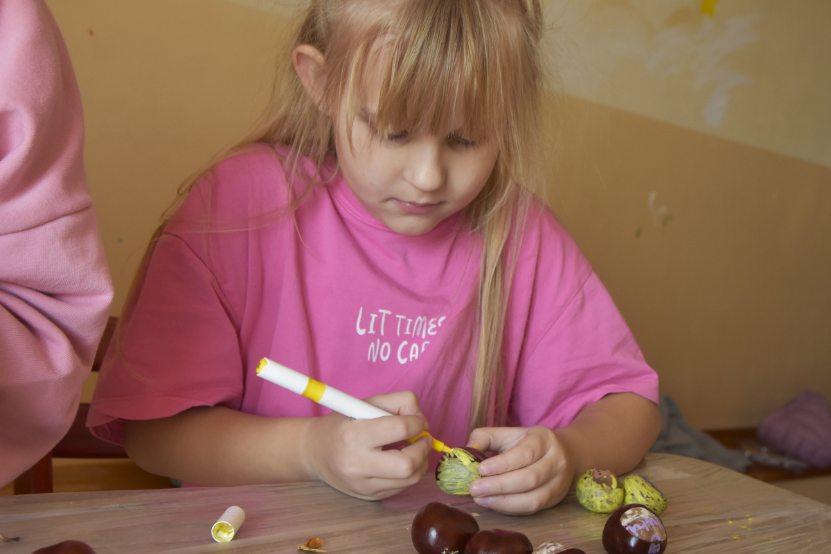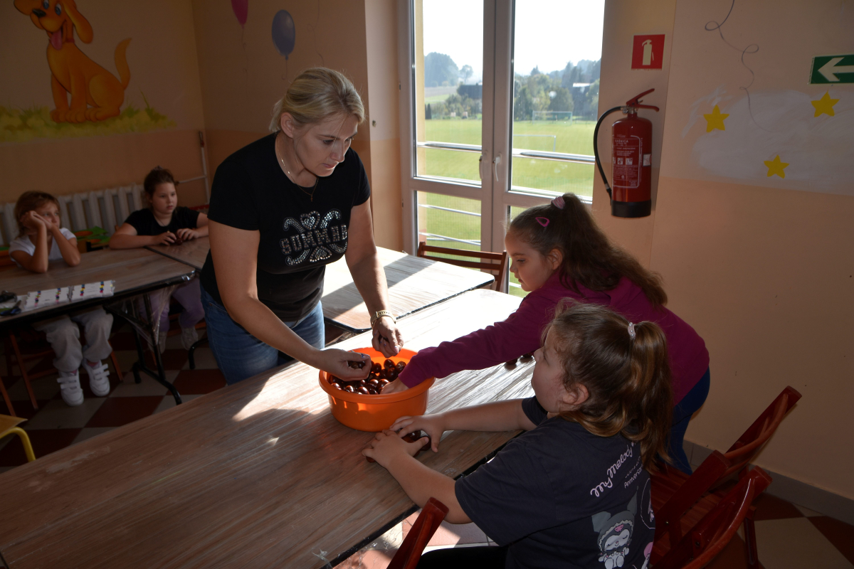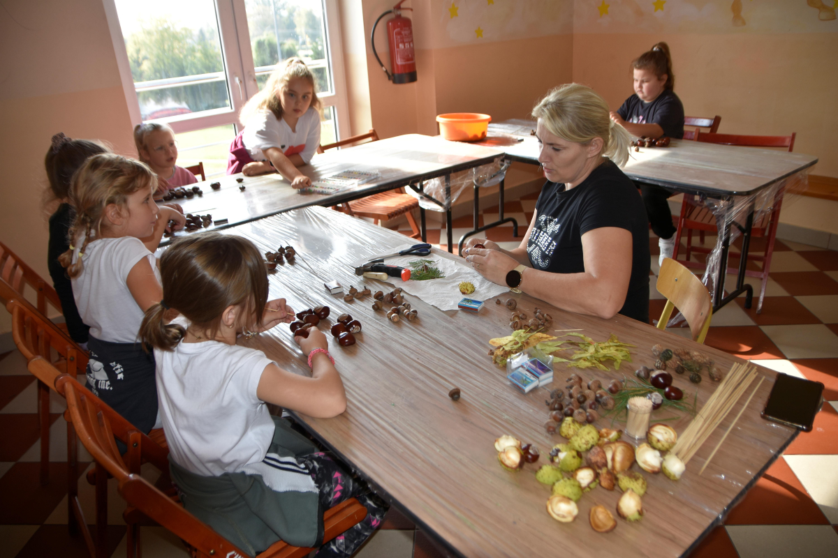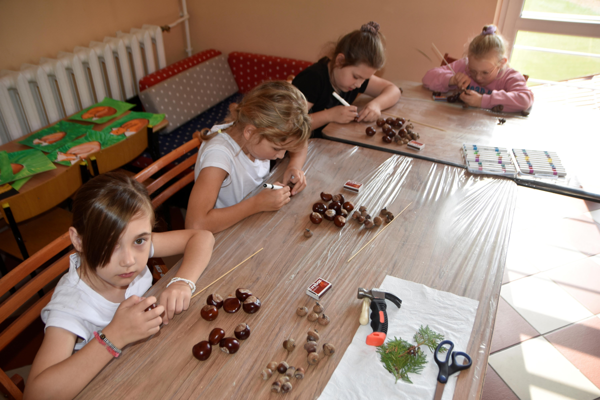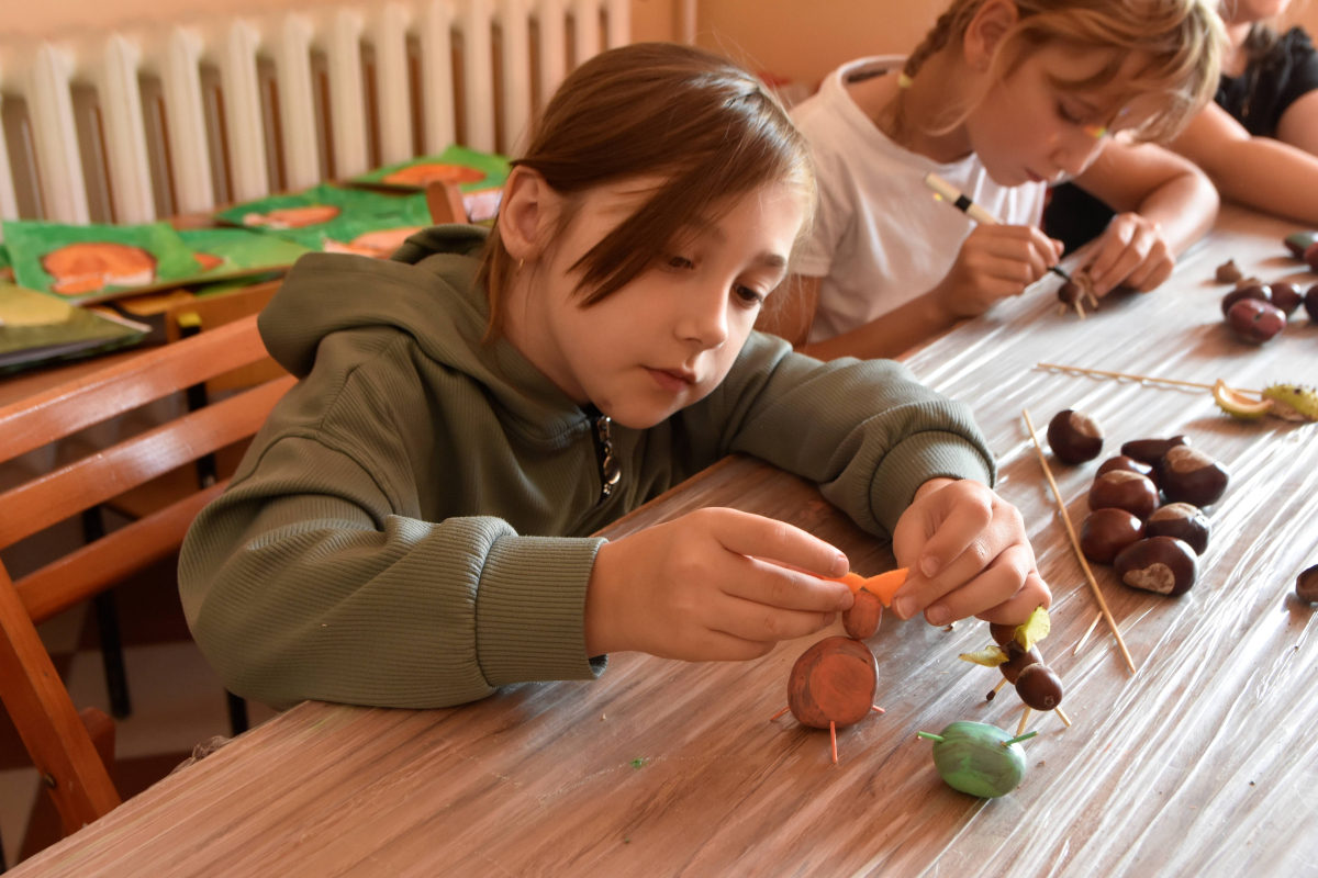 Tematem dzisiejszych warsztatów były jesienne ludziki! Jak można się domyślić, do wykonywania figurek wykorzystaliśmy jesienne skarby, takie jak kasztany i żołędzie.