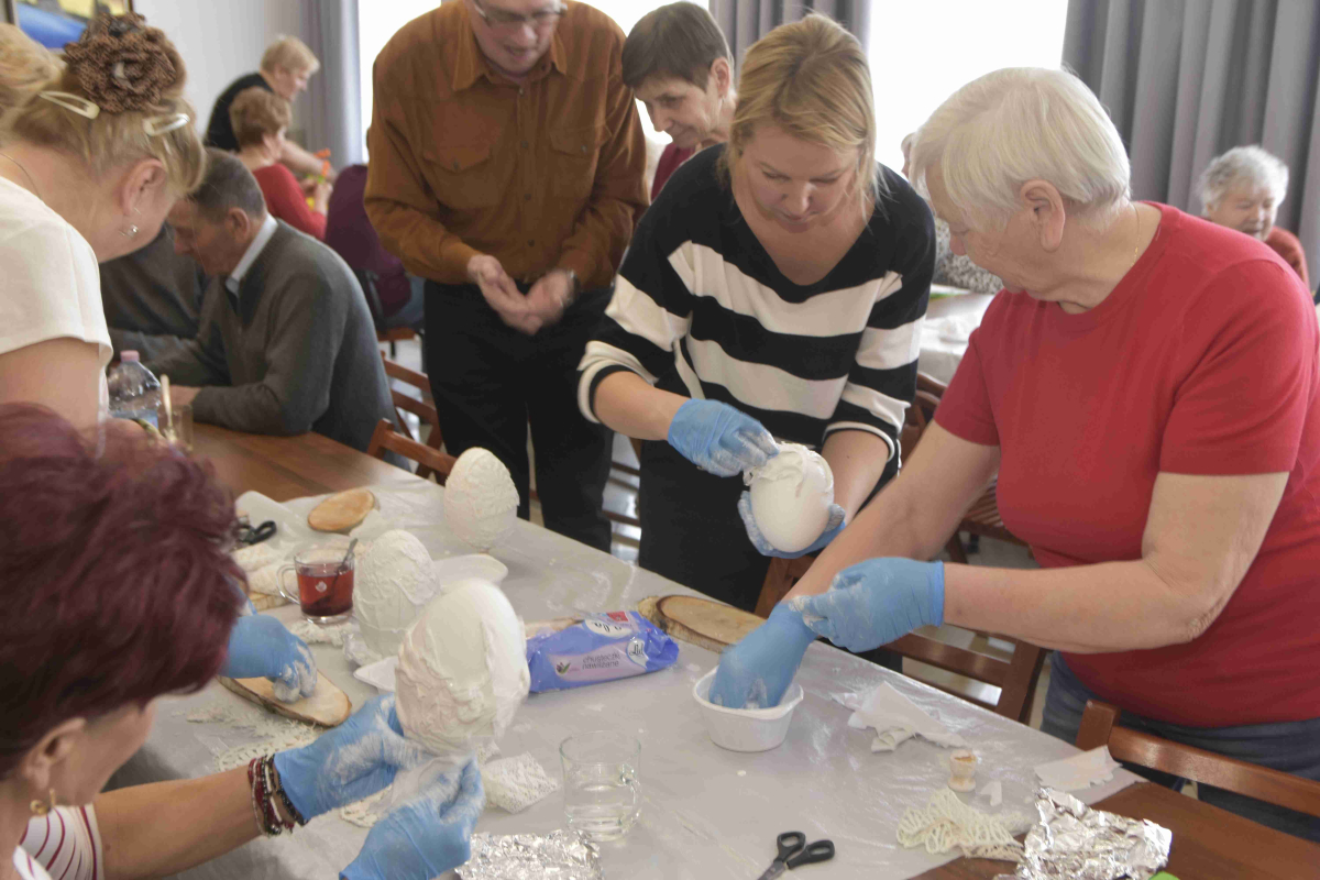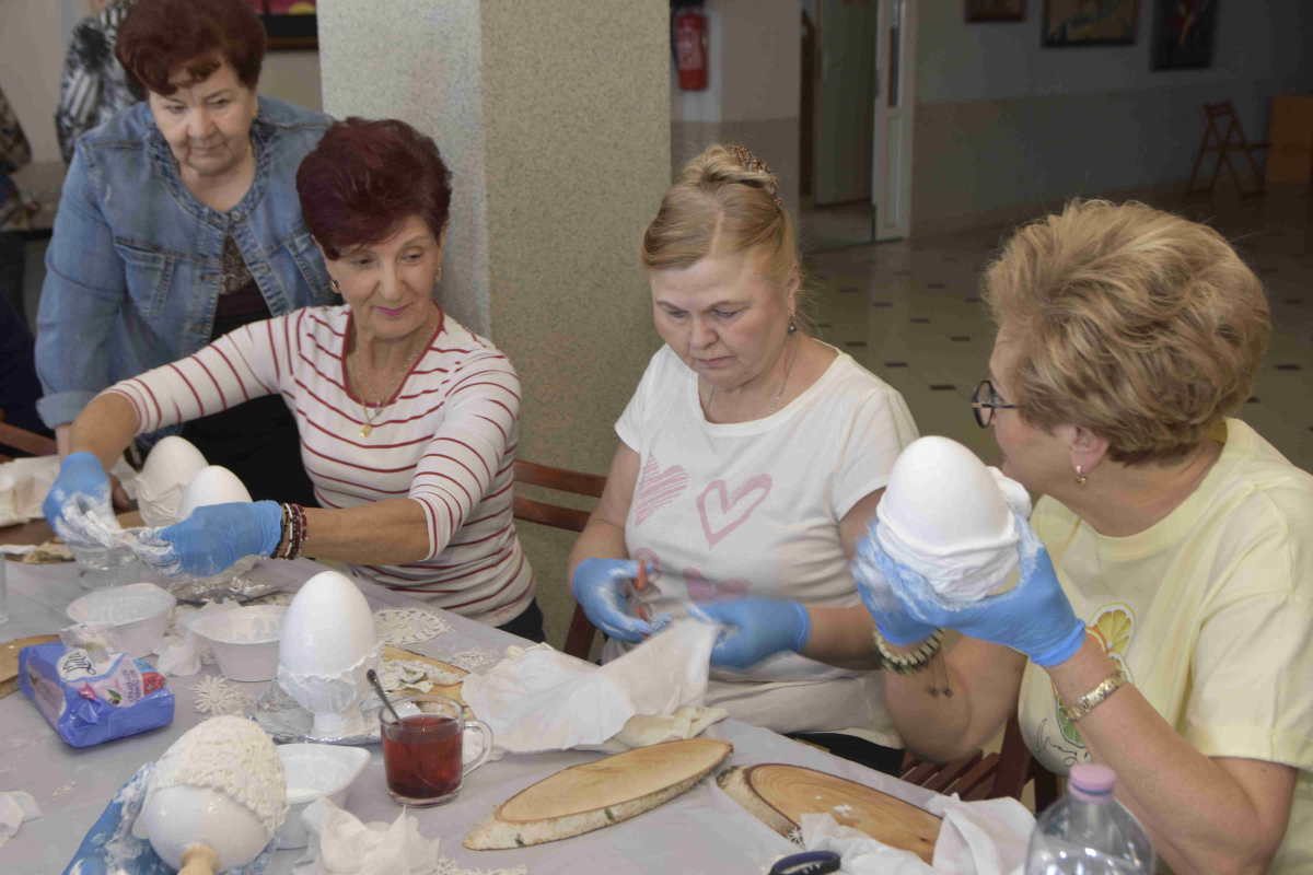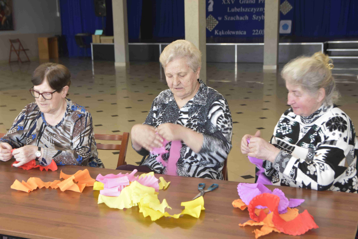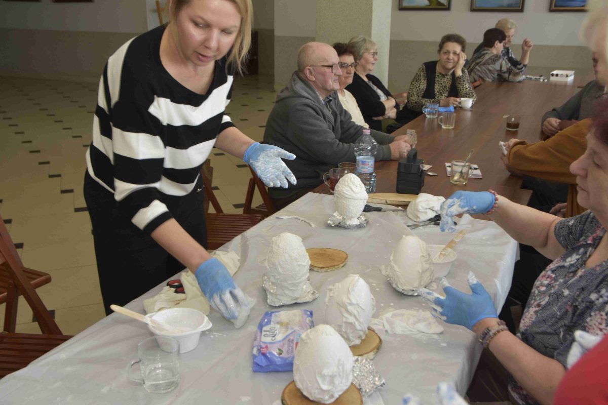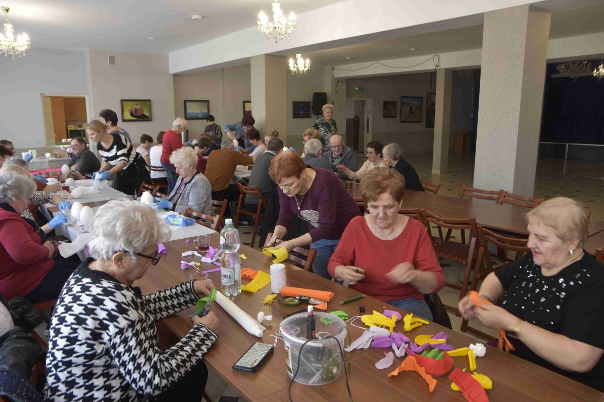 Kolejne spotkanie Seniorów z gminy Kąkolewnica odbyło się w Gminnym Ośrodku Kultury w Kąkolewnicy w dniu 19 marca br., część z uczestników wykonywało kwiatki i ozdoby które będą wykorzystane przy wiciu palm wielkanocnych - które odbędzie się 26 marca, kolejna grupa zajmowała się ozdabianiem wielkich steropianowych jaj wielkanocnych przy użyciu techniki utwardzania tekstylnego. Jak zwykle była przerwa na gimnastykę dla wszystkich, aerobik i pyszny poczęstunek z wielkanocnej kuchni.