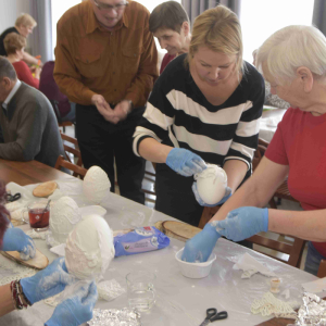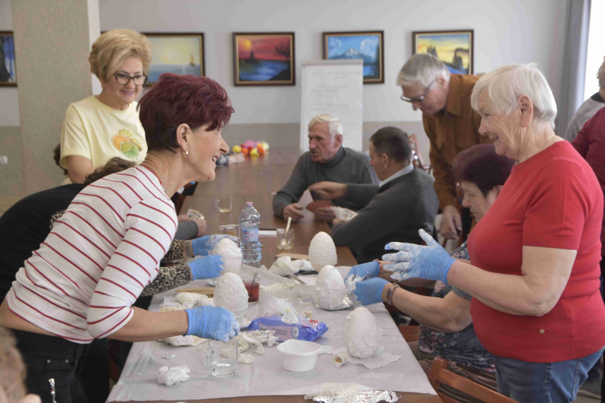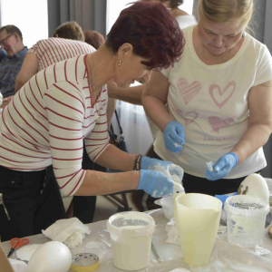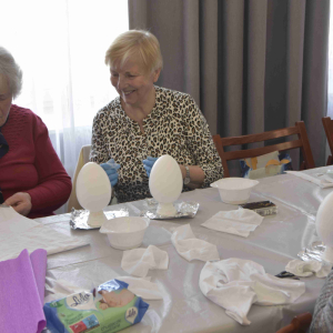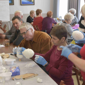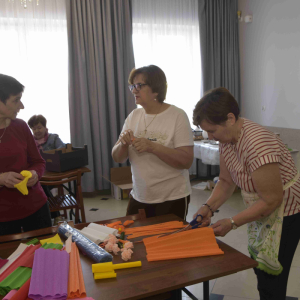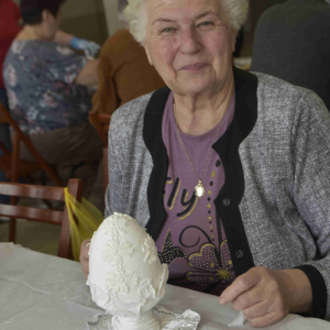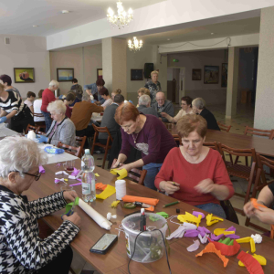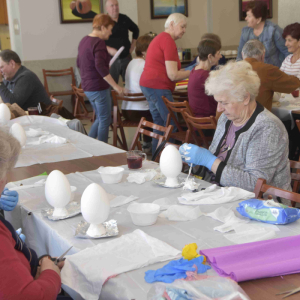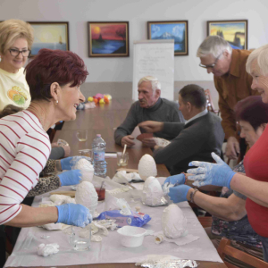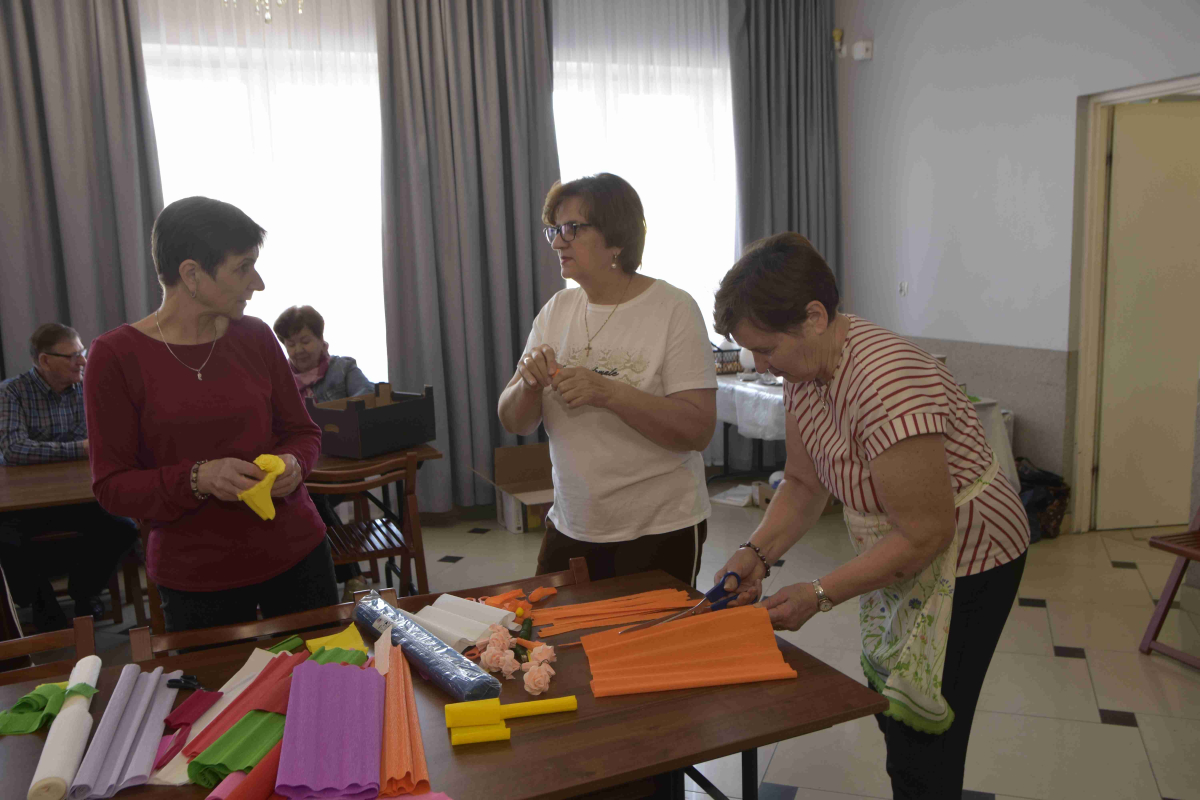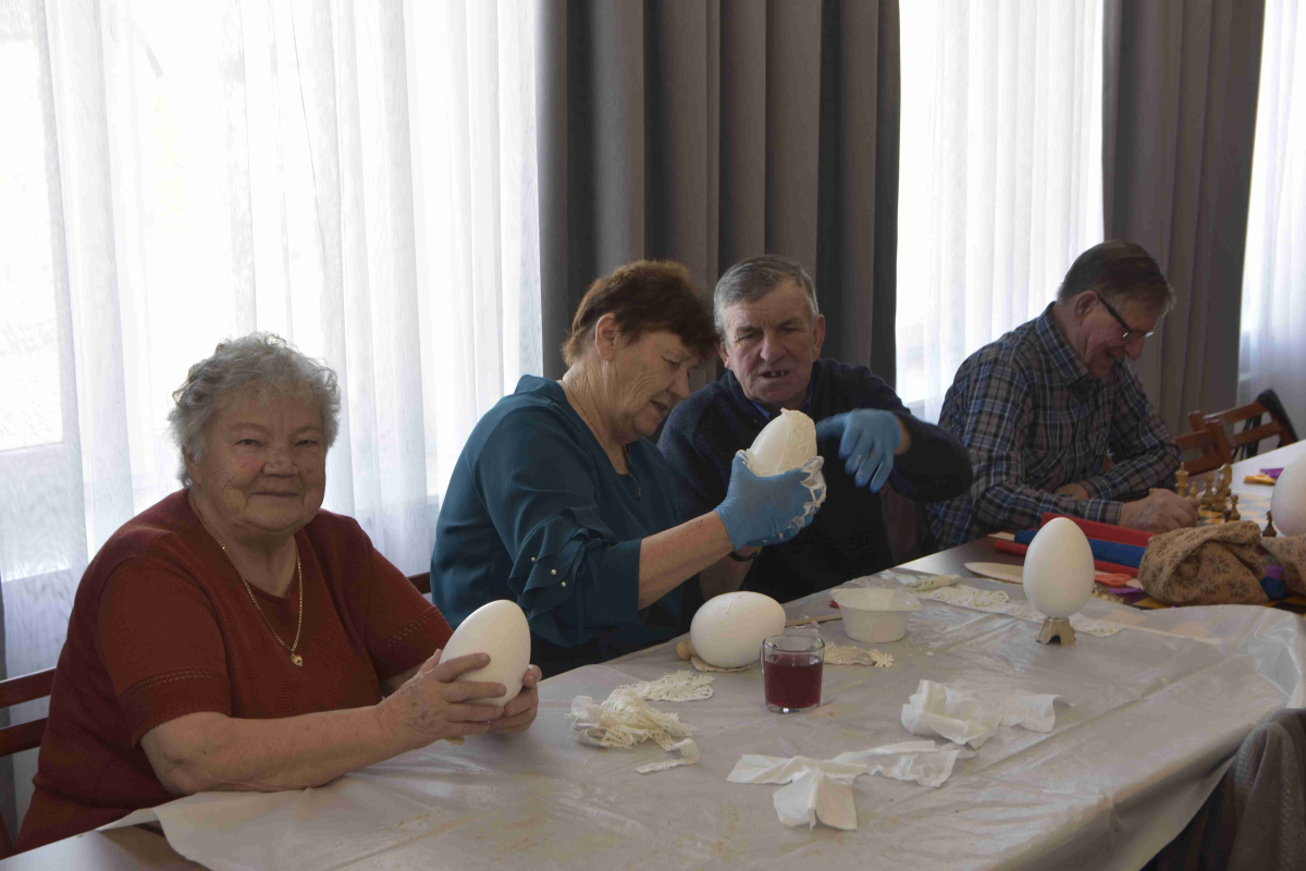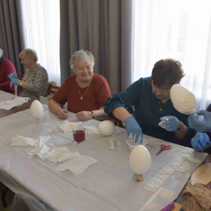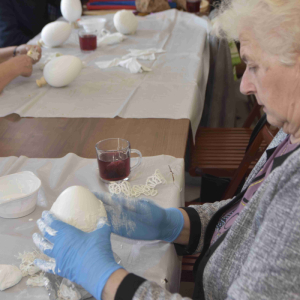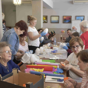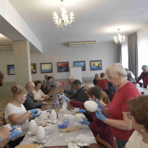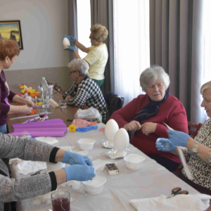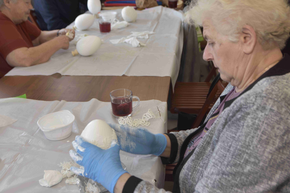 Kolejne spotkanie Seniorów z gminy Kąkolewnica odbyło się w Gminnym Ośrodku Kultury w Kąkolewnicy w dniu 19 marca br., część z uczestników wykonywało kwiatki i ozdoby które będą wykorzystane przy wiciu palm wielkanocnych - które odbędzie się 26 marca, kolejna grupa zajmowała się ozdabianiem wielkich steropianowych jaj wielkanocnych przy użyciu techniki utwardzania tekstylnego. Jak zwykle była przerwa na gimnastykę dla wszystkich, aerobik i pyszny poczęstunek z wielkanocnej kuchni.