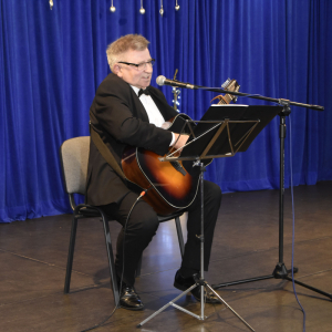Zaraz po rozpoczęciu wydarzenia i powitaniu gości na scenie pojawił się Pan Jerzy Korulczyk, umilając nam czas grając koncert na gitarze.