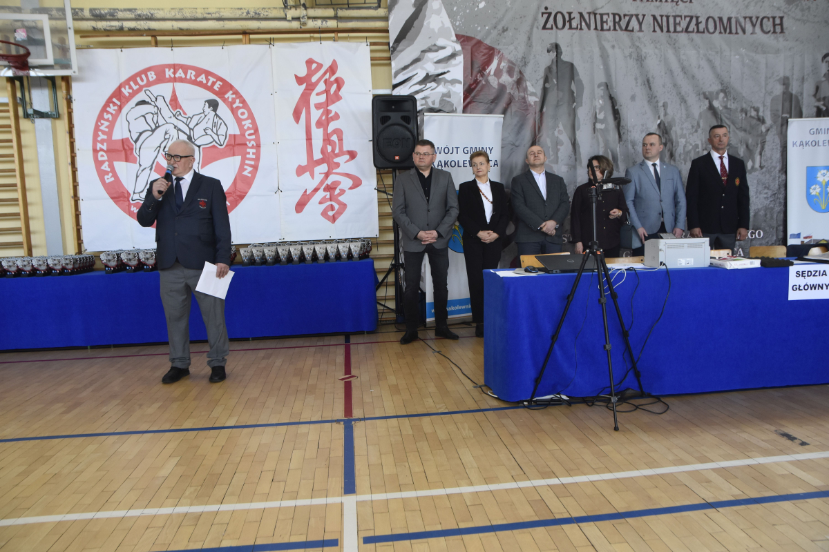 O godzinie 12.00 nastąpiło oficjalne uroczyste otwarcie VI Ogólnopolskiego Turnieju Karate Kyokushin Pamięci Żołnierzy Niezłomnych, gdzie kolejno zabrali głos: Organizator Turnieju Sensei Marek Woroszyło, Przewodniczący Rady Powiatu Radzyńskiego Grzegorz Gałecki oraz Sekretarz Gminy Kąkolewnica - Jarosław Miłosz. Wręczono także podziękowania dla opiekunów klubów i przedstawicieli władz.