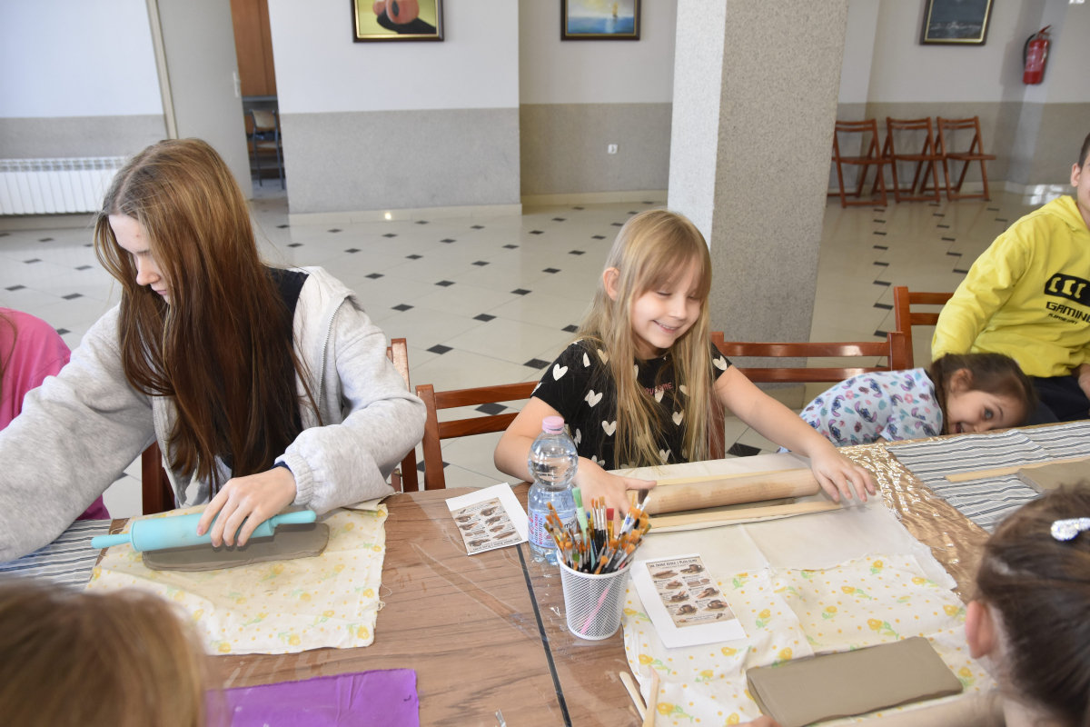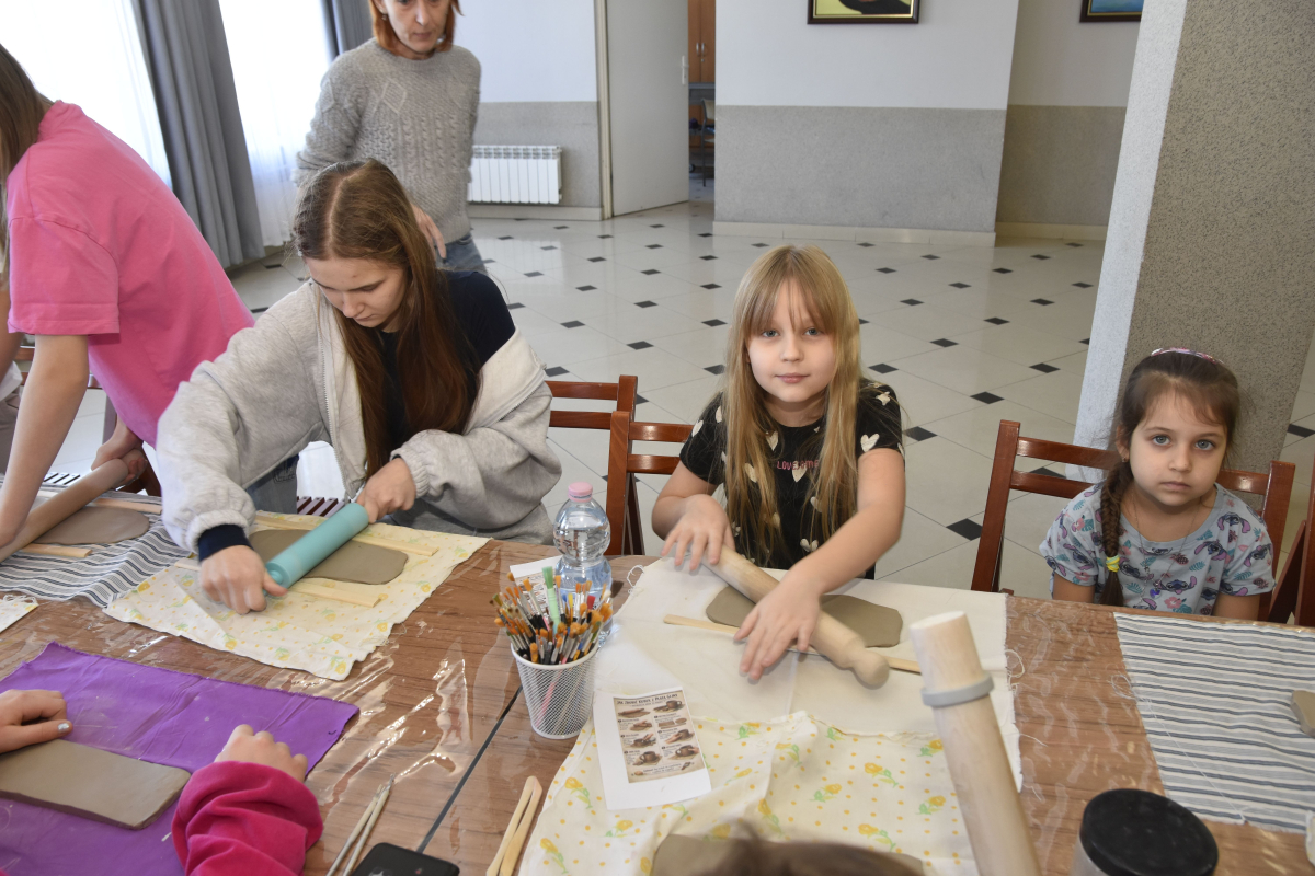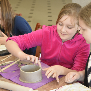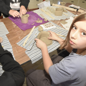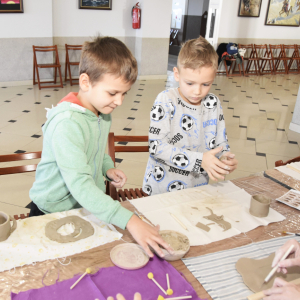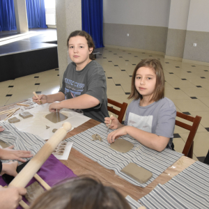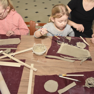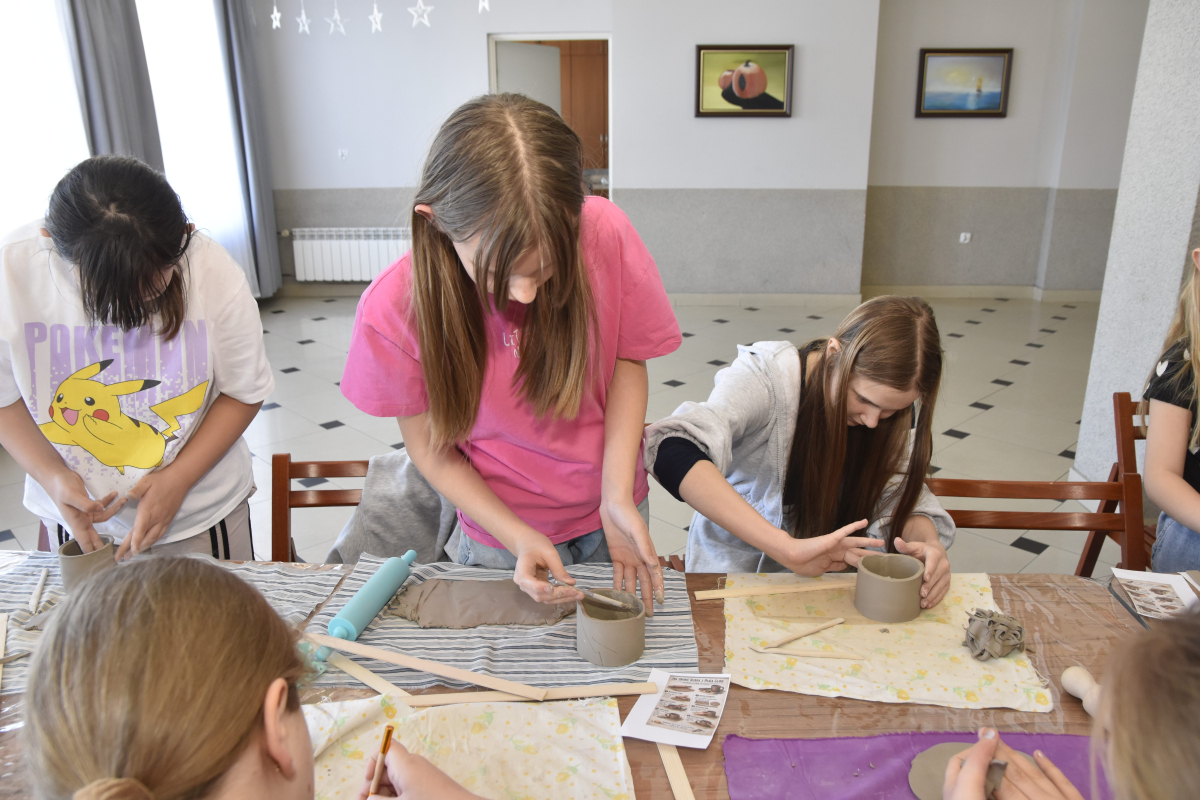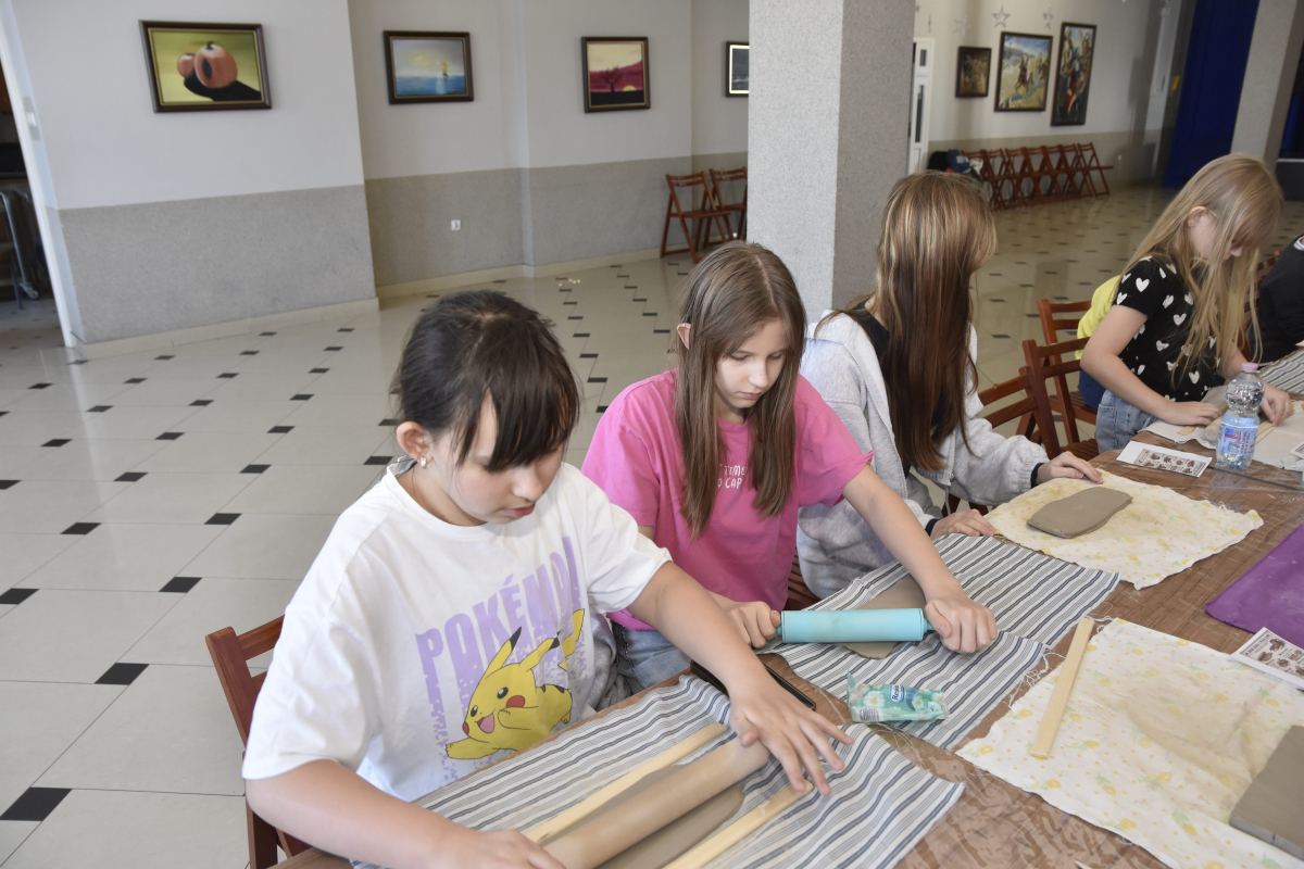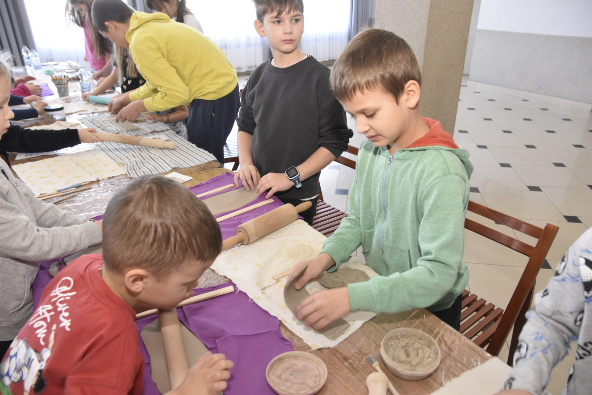Podczas zajęć młodzi uczestnicy zajęć własnoręcznie wykonywali naczynia z gliny przy pomocy instruktorki.