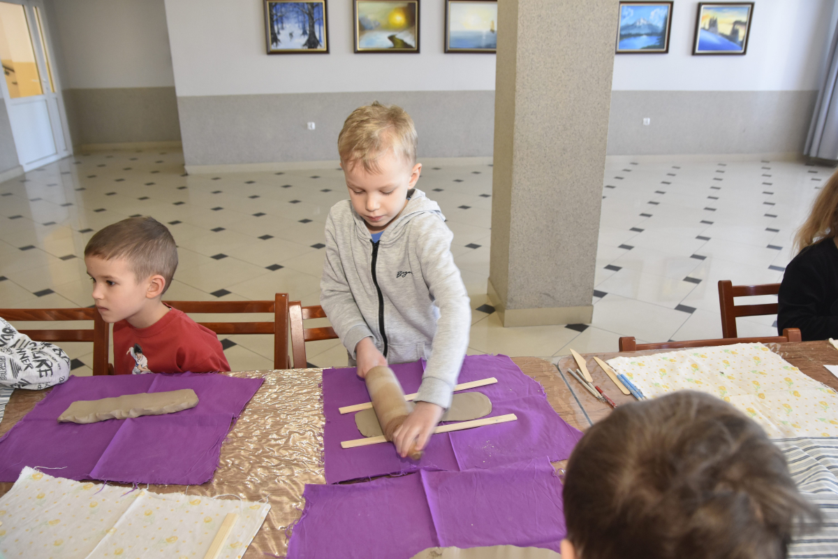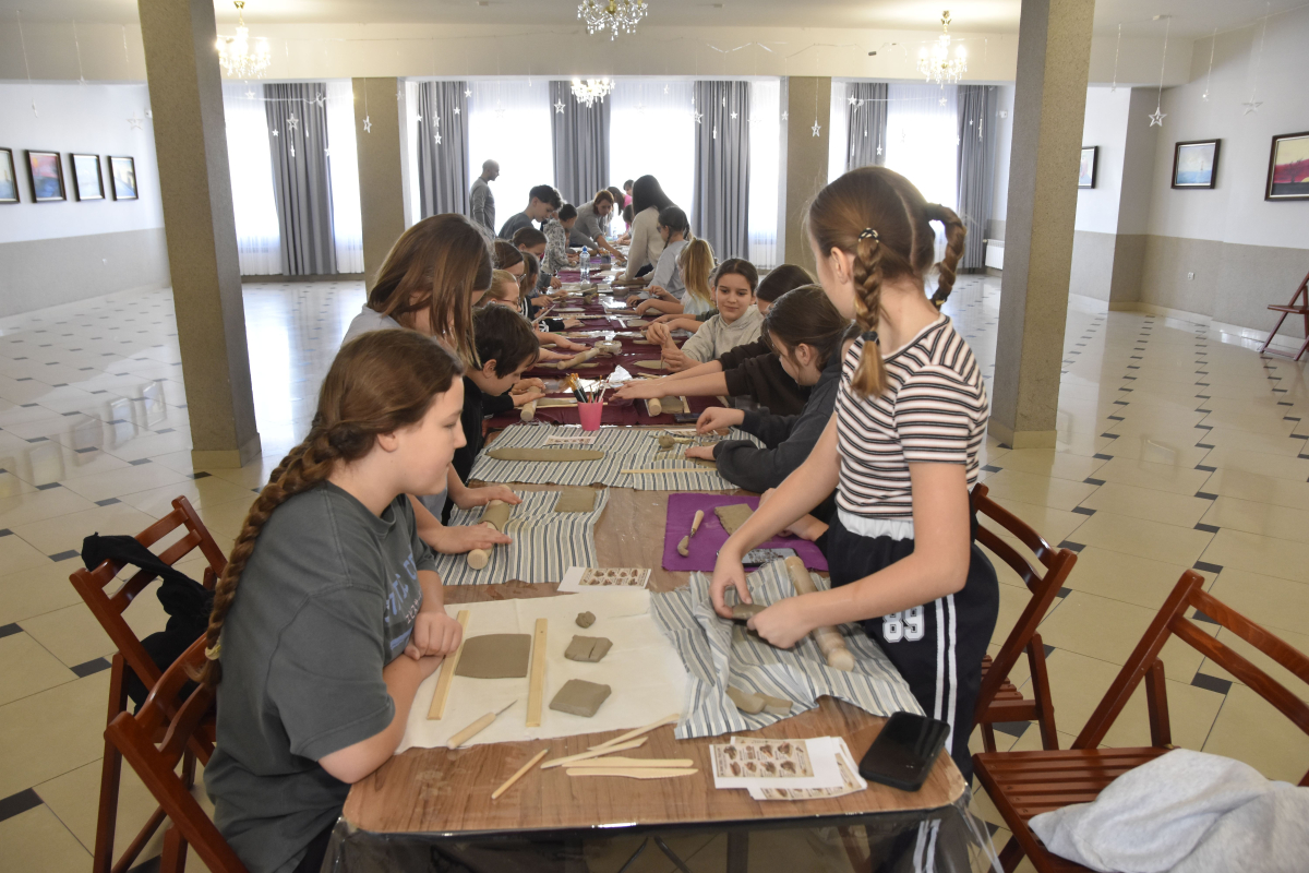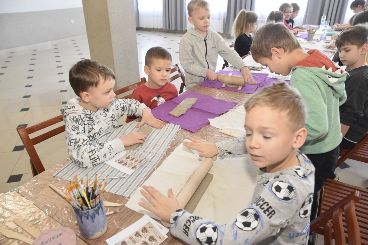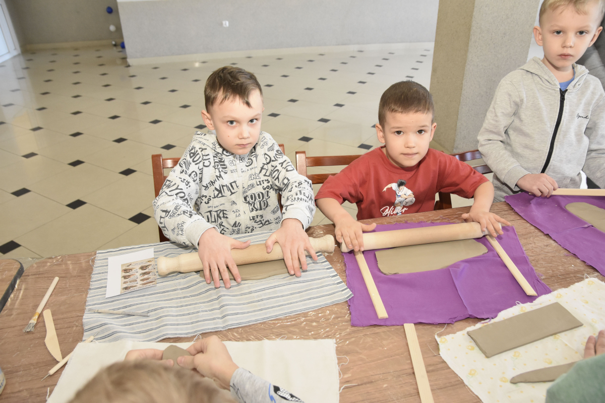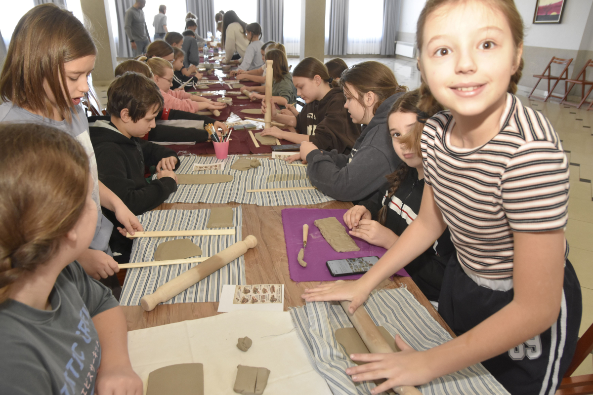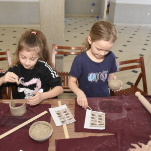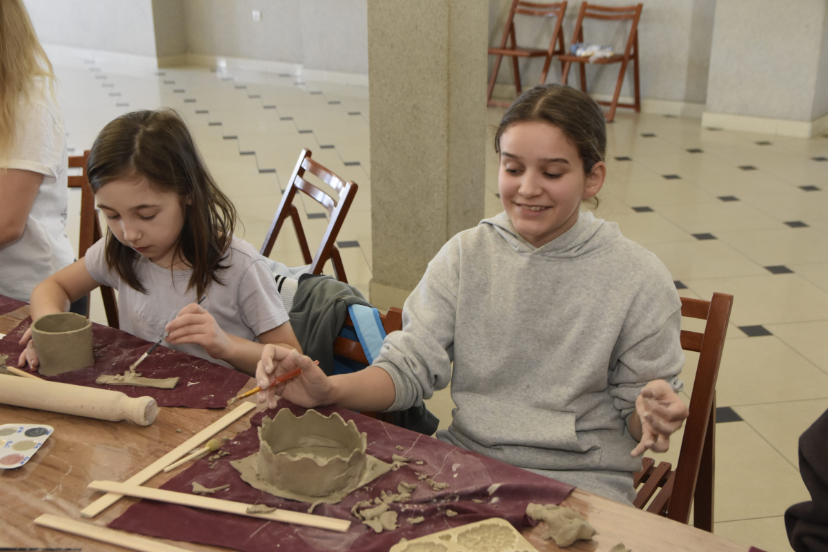 Podczas zajęć młodzi uczestnicy zajęć własnoręcznie wykonywali naczynia z gliny przy pomocy instruktorki.