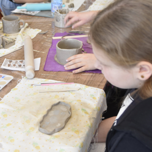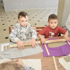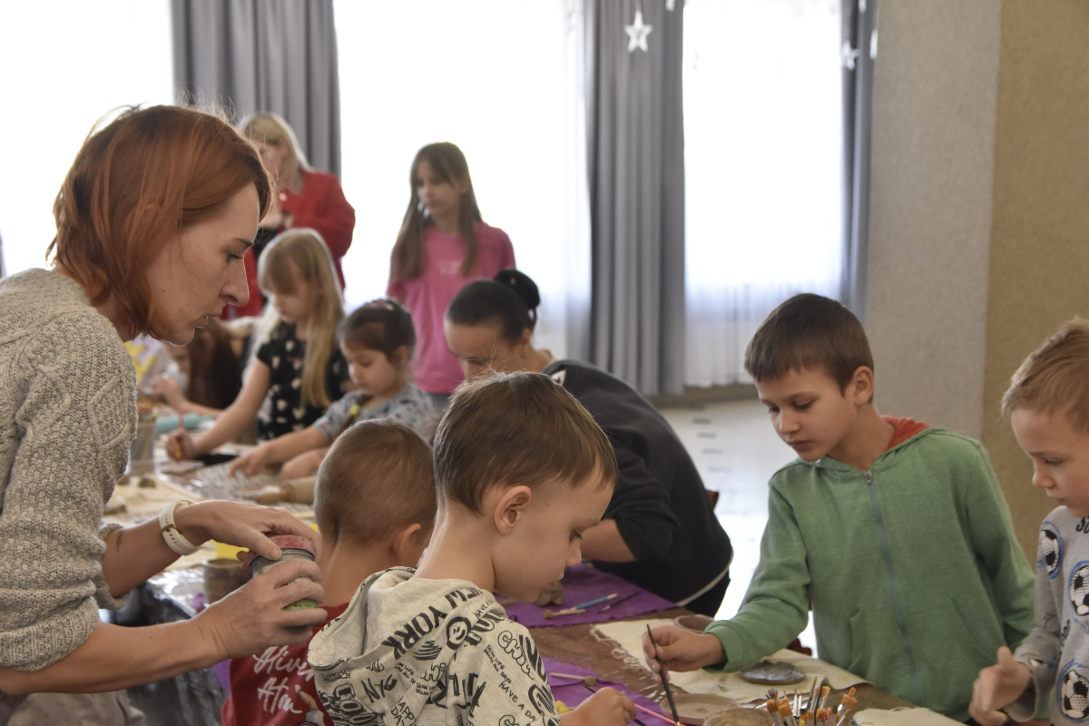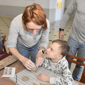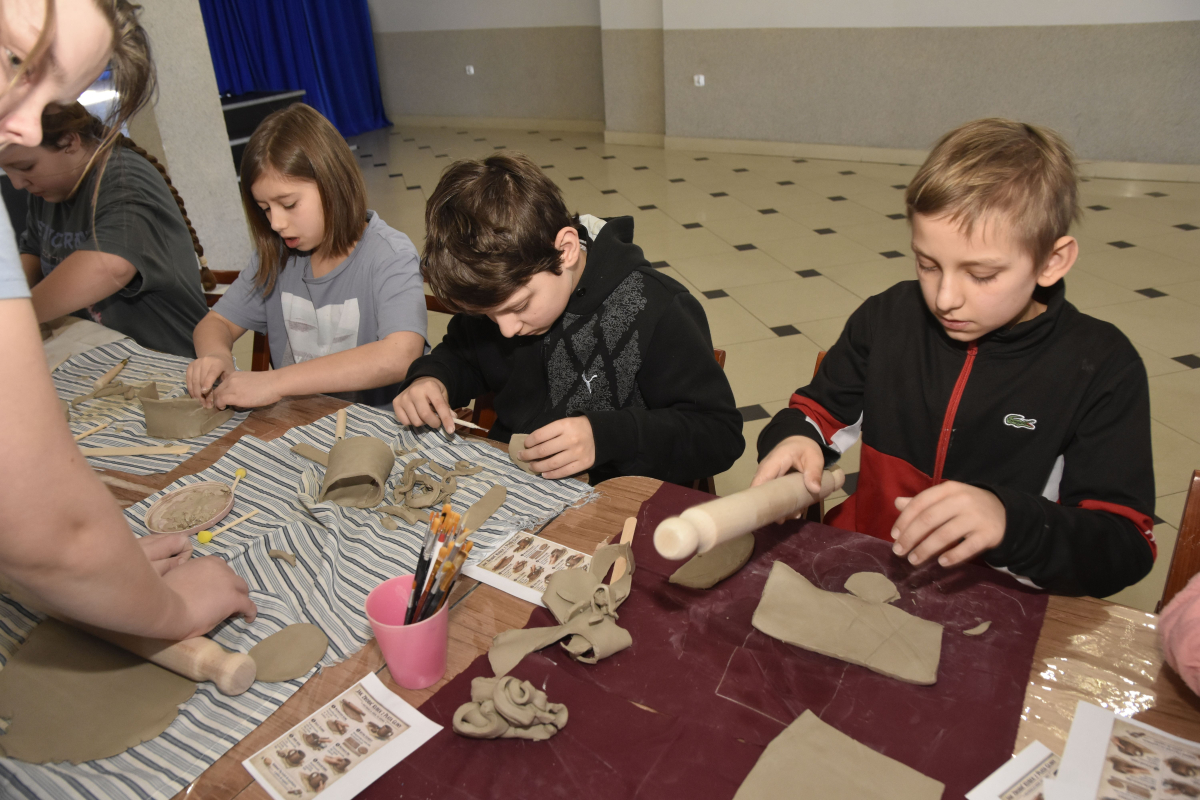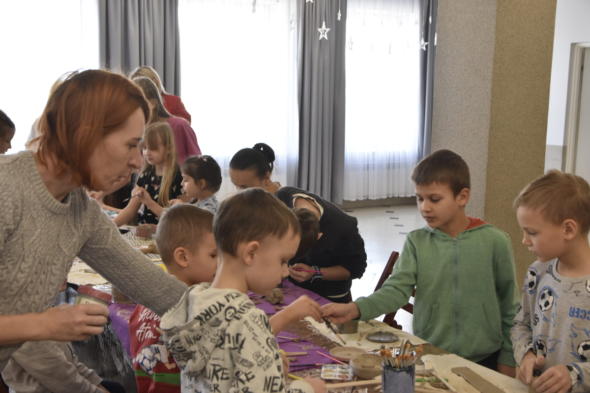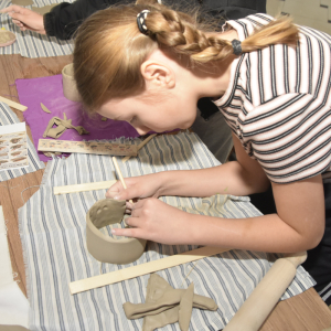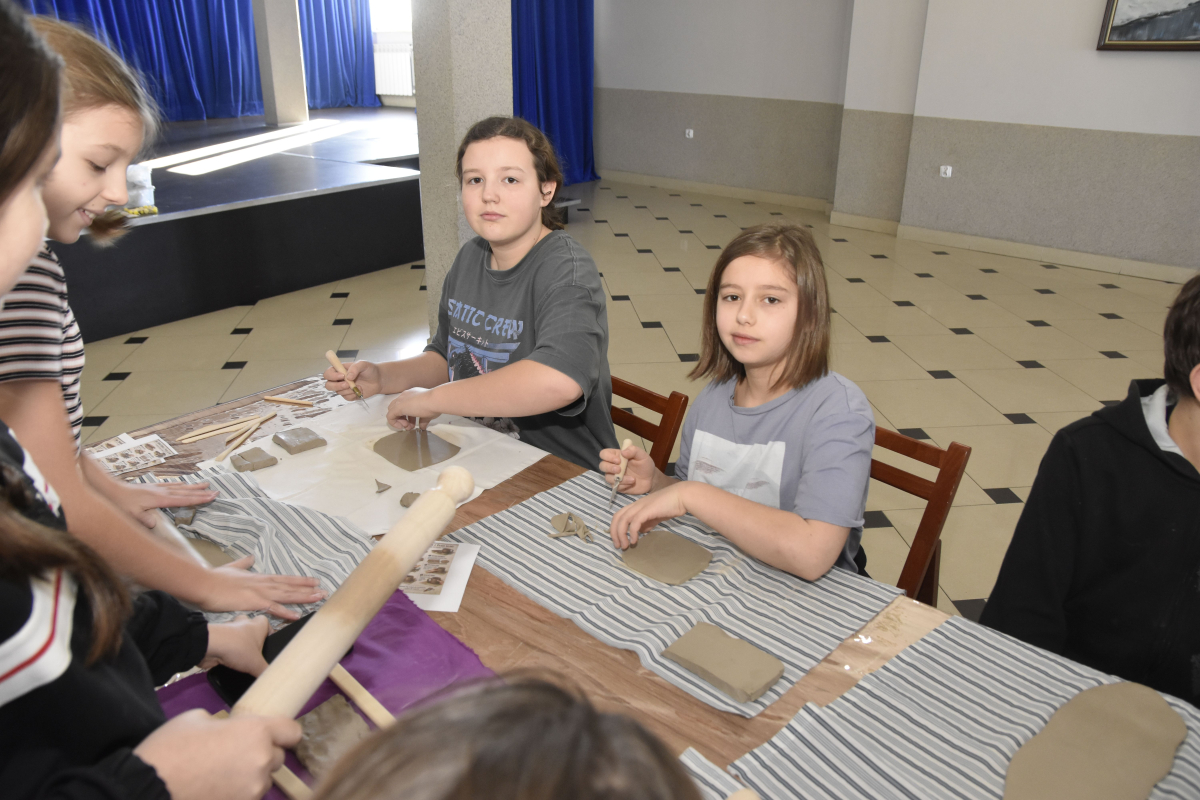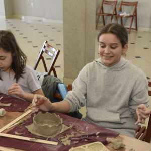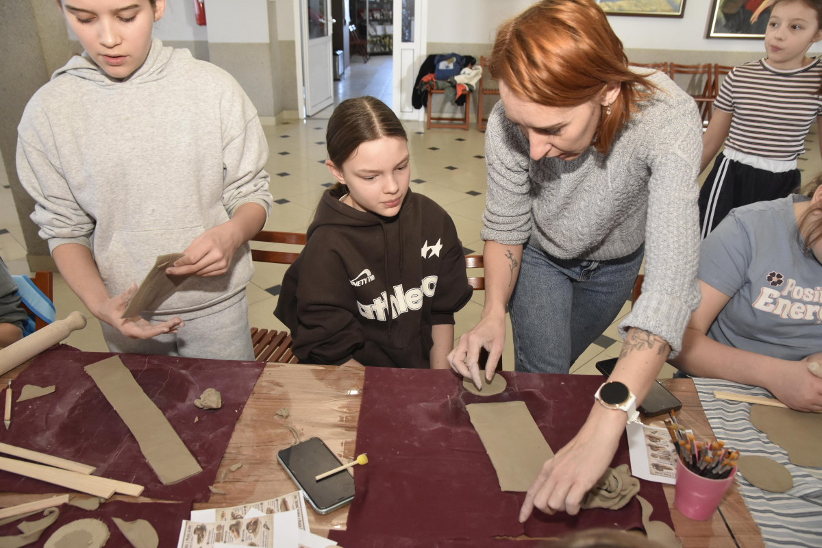 Podczas zajęć młodzi uczestnicy zajęć własnoręcznie wykonywali naczynia z gliny przy pomocy instruktorki.