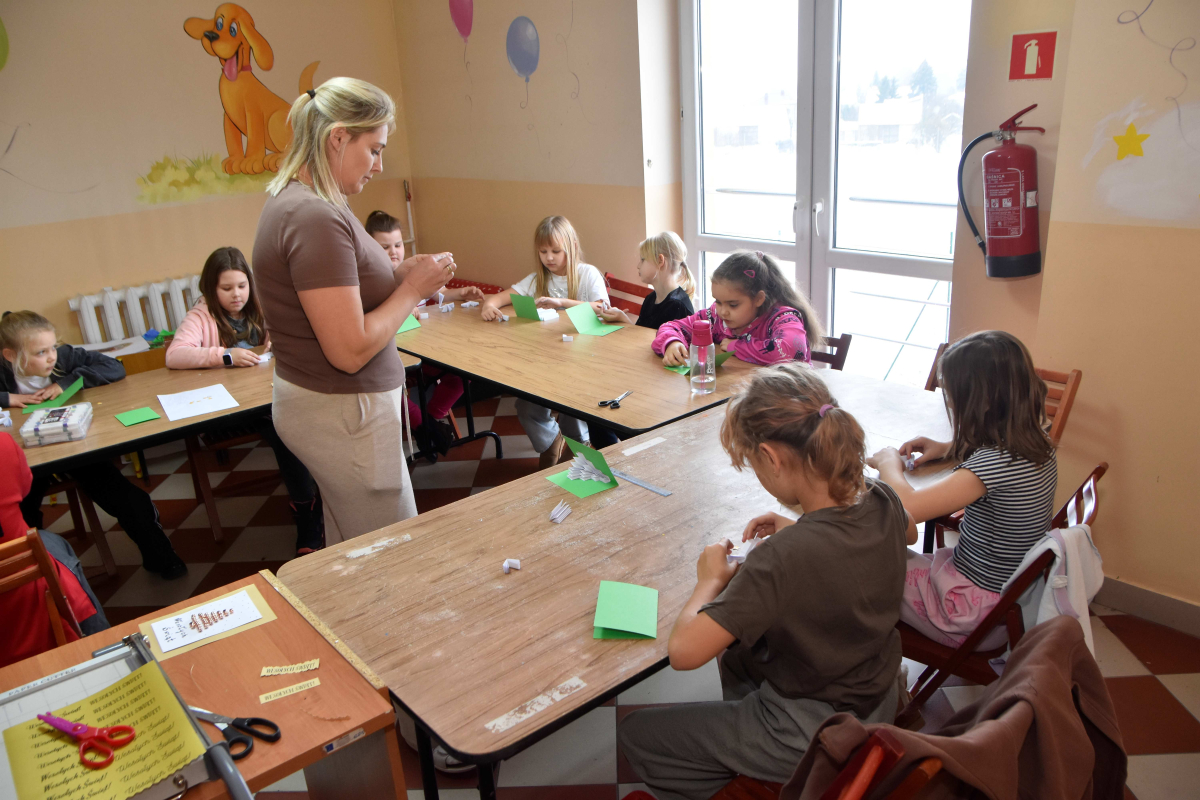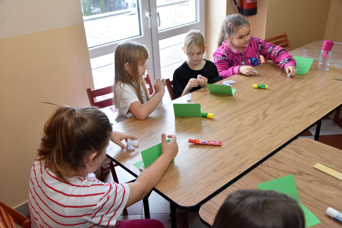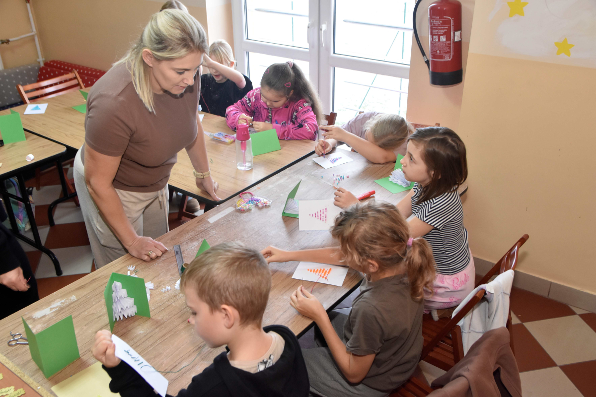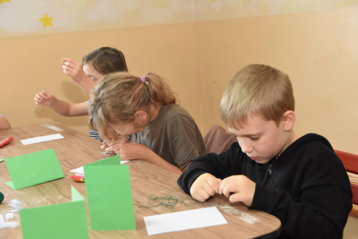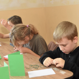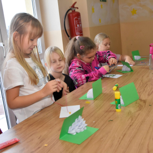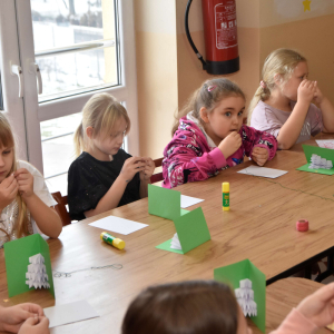 Podczas zajęć w ubiegły wtorek dzieci wykonywały oryginalne świąteczne kartki.
