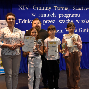 21 maja 2025 r. w sali Gminnego Ośrodka Kultury w Kąkolewnicy odbył się XIV Gminny Turniej Szachowy Szkół Podstawowych w ramach programu „Edukacja przez szachy w szkole”.